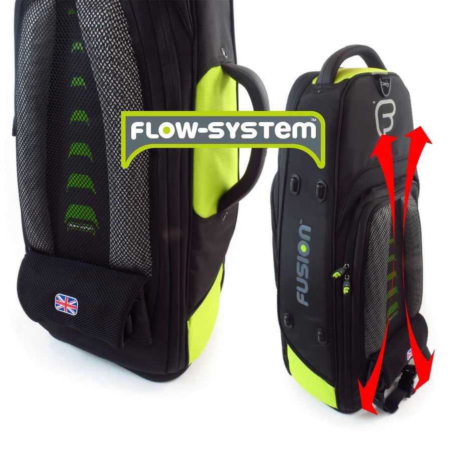 - Fusion's own "Flow-System" similar to that of a hiker's backpack, which makes the bag really comfortable to carry and helps prevent you from getting hot when its on your back.