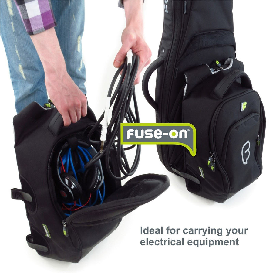 This bag is ideal for brass & woodwind musicians who need extra space to carry mutes, as the padding helps keep everything well protected. The same applies to guitarists who need additional space to carry leads, microphones or foot pedals to a gig. In addition, the Large "Fuse-on" bags have a rear concealed zipped compartment with a removable padded sleeve, which holds a 15" laptop. The bag is also large enough to carry spare clothing to a gig.
